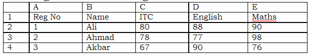 Question No 24:Address of cell containing value "7" in spread sheet given below is: